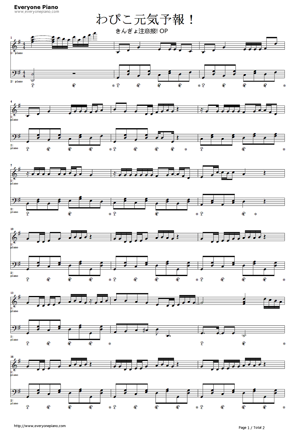 当前位置:首页>娱乐>わぴこの元気予报!钢琴谱-内田顺子