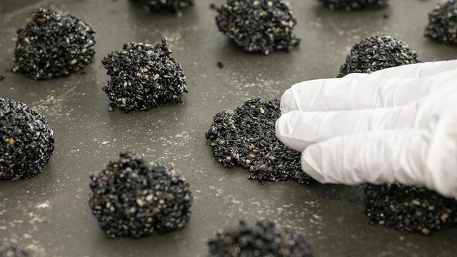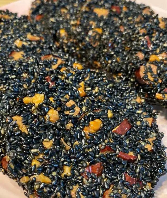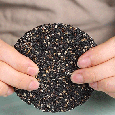 黑芝麻经过大火翻炒,祛除燥热性,又能把表面的那层膜给碎掉,里面的营养更容易被身体吸收,黝黑油光的黑芝麻中,经过鸡蛋与蜂蜜的混合,被紧密的压制在一起。