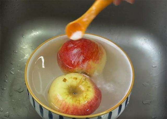 1.大家好,今天咱们用苹果和糯米做个好吃的,苹果皮的营养价值很高,不需要去掉,可以在水里加一勺盐,好好清洗一下就行。