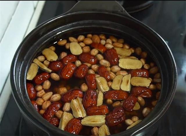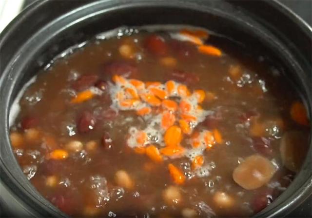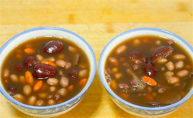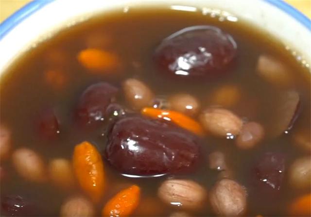 准备食材: 红豆、花生米、红枣、清水、枸杞、老红糖 具体做法: