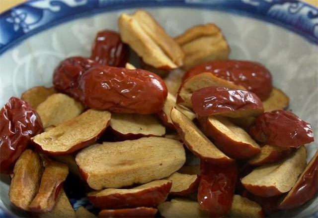 2.准备40克洗净的红枣,切成片备用,枣核可以直接丢掉,去掉枣核煲的汤不容易上火。
