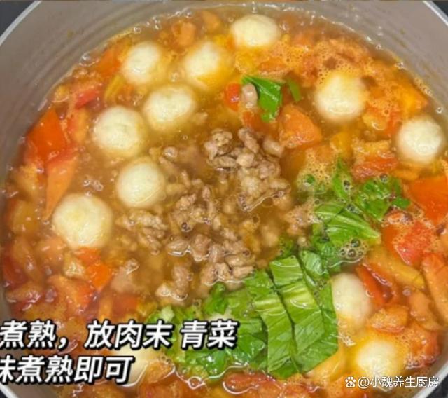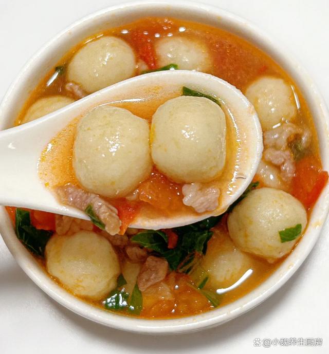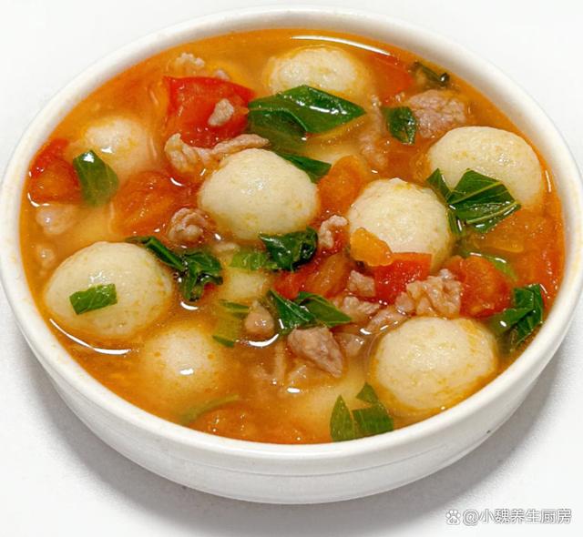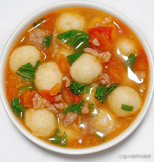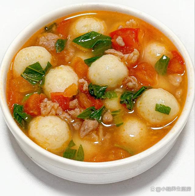 步骤6:倒入提前炒好的肉末,加上半勺味极鲜,加上食盐一勺,加上胡椒粉半勺,放入一些青菜和香菜,丢入葱花点缀,关火盛出,这道番茄山药肉末小丸子汤就制作完成了。 番茄山药肉末小丸子汤是一道美味的汤品,选用番茄,山药,肉末制作而成,食材每次简单,汤色非常好看,肉末非常鲜嫩,丸子非常有弹性,汤品鲜美可口,补充营养的同时,让胃口越来越好。 各位网友们,你们是否学会这道番茄山药肉末小丸子汤的正确做法吗?(各位网友都出自网络)