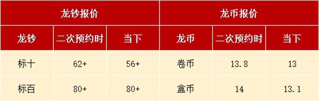 在二次预约兑换的时候,龙钞报价稳定在62块上方,如今散钞和带4标十的报价,只剩下56了。 无论是龙币还是龙钞,相比几天之前,都有了较大幅度的下滑。百科网也给大家整理了表格进行直观对比。