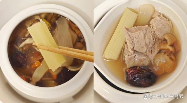6:然后继续小火炖70分钟左右,中途用汤勺搅动,最后放入枸杞子,加上胡椒粉和食盐若干,把汤品炖煮入味即可,出锅开吃,这道甘蔗玉竹石斛羊肉汤就制作完成了。 甘蔗玉竹石斛羊肉汤是冬天滋补的汤品,冬天天气非常阴凉,口干舌燥,嗓子总是不舒服,气血会非常差,这个时候要调理好自己身体,让身体越来越强壮。这款汤品选用甘蔗,玉竹,石斛和羊肉炖汤,汤品鲜美,肉质鲜美,补血强身,为冬天储备营养,学会给家里人做一做。