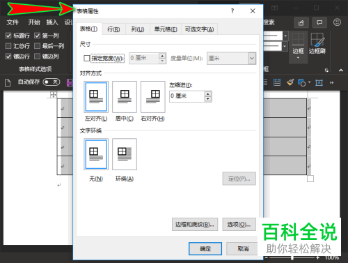 然后在我们的界面中就会弹出表格属性窗口。 3. 接下来我们就可以在表格属性窗口中找到选项按钮,点击之后,会在界面中弹出表格选项窗口。