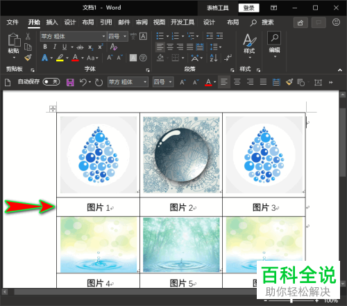5. 接下来我们的表格已经设置完成了,然后我们就可以将我们需要排版的图片插入到表格中了。我们还可以在表格的下方给我们的图片命名。并且可以发现我们的表格会随着图片的大小进行调节。