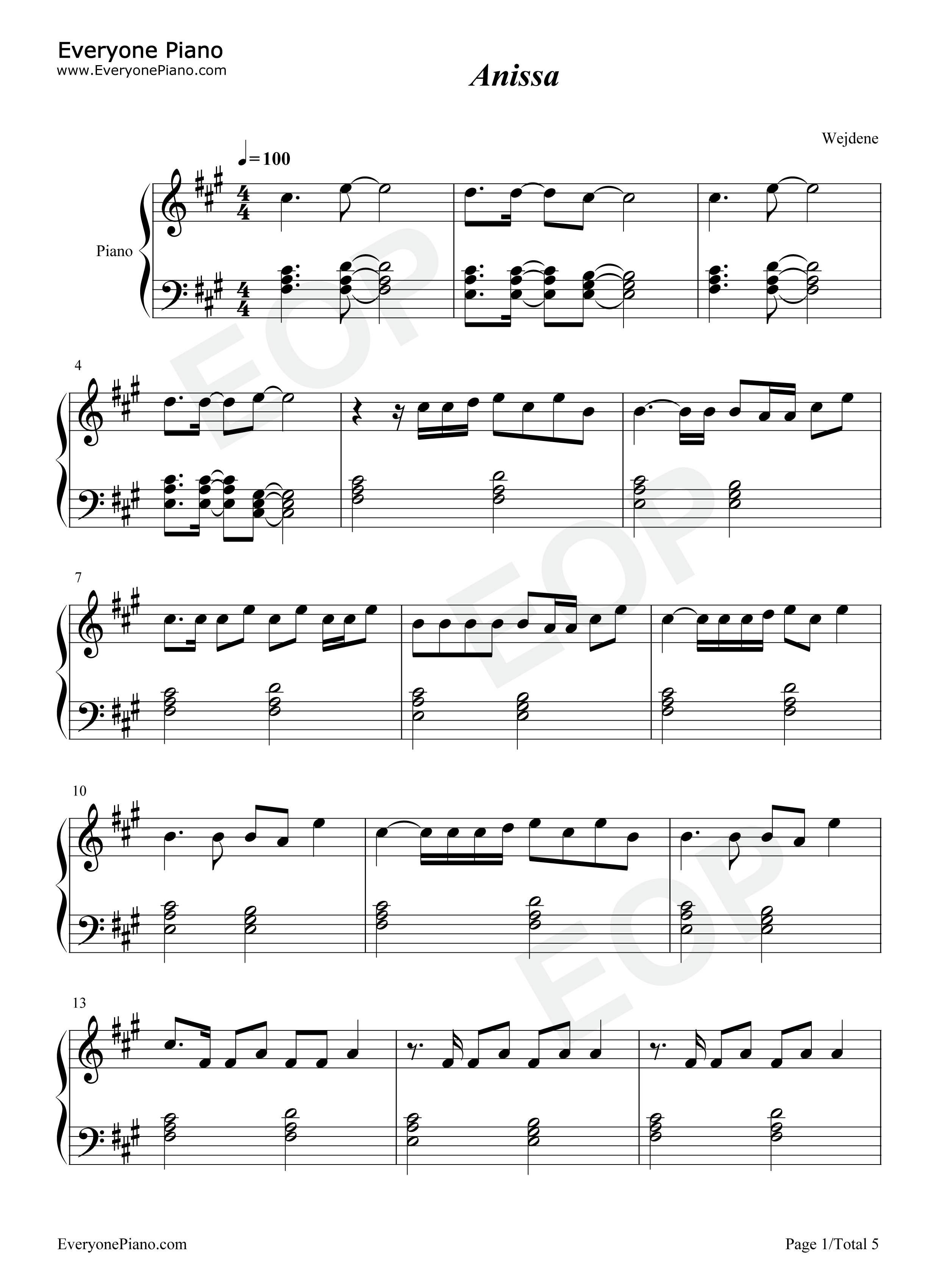 当前位置:首页>娱乐>Anissa钢琴谱-Wejdene