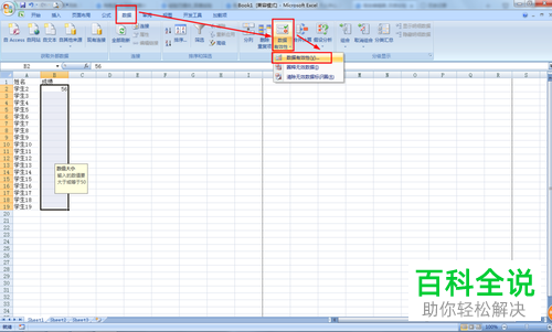 6. 设置好之后,点击确定即可完成操作。如果以后不再使用数据有效性的话,则点击左下角的”全部消除“按钮即可。