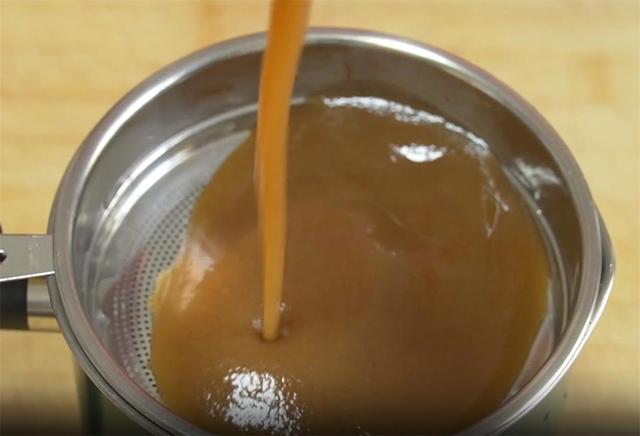 8.再把梨汁用筛网过滤一遍,这样过滤以后口感更好。