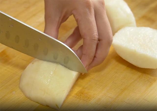 2.先把外皮去掉,再切成小块,全部放入料理机中。
