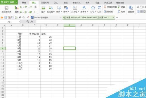 第二,选择要绘制折线图的数据区域,然后点击插入图表,如下图所示。