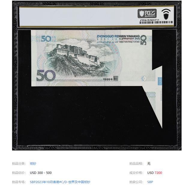 在此前的拍卖会中,1张1999年的50元纸币,拍出了7200美元,引起了不少藏友的关注。