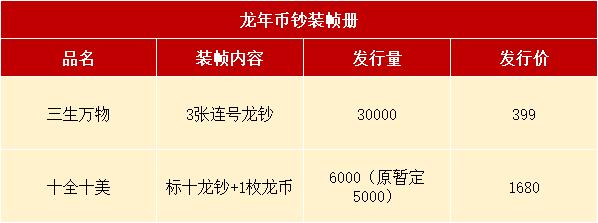 第二版要发行的《十全十美》,里面装帧着10张标准连号的龙钞,以及一枚镭射卡工艺装帧的龙币,计划只发行5000套。 虽然不能面值预约,发行价也比较高,但它们的装帧样式新颖,发行量不多,在公告后就受到了不少藏友的追捧,已经火了!