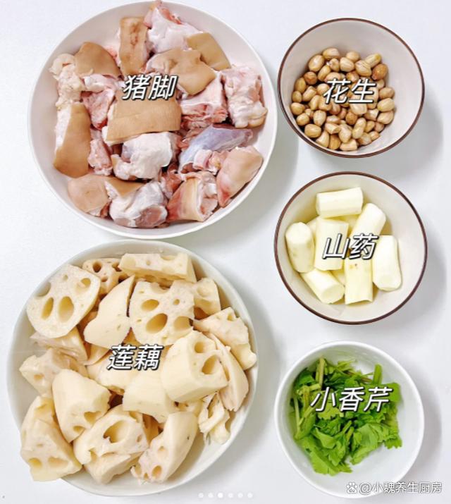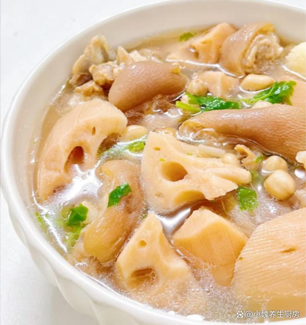 已经到了十一月份,又是新的一个月,秋季终于要结束了,马上要盼来寒冬,立冬是冬天非常重要的标志,冬天从这一天开始,气温也更低了,这个时候身体虚寒,气色会很差,身体抵抗力差,这个时候要注意养生,强壮我们的体魄,才能健康过完今年。冬天到了以后,很多人开始储备蔬菜,天冷就不愿意出门买菜,比如说白菜,萝卜和莲藕,现在天气太冷了,不想出门吃饭,给家里人制作一款靓汤——山药黄豆炖猪蹄汤,此汤很受南方人喜欢,鲜美倍增,益处多多。明日立冬,无论贫富,常给家人喝这汤,汤品鲜美,补血养颜气色好。  【山药黄豆炖猪蹄汤的制作技巧】 食材明细:选购优质黄豆50克左右(黄豆是高蛋白的食材,营养价值很高,特别适合搭配猪蹄炖汤),新鲜铁棍山药150克(铁棍山药是山药中的优选,富含大量植物蛋白,维生素和纤维素,秋冬正是吃山药的时候,搭配猪骨和猪蹄是绝配,炖出来的汤品非常滋补),冷水若干,温开水少许,少许食用油,两个优质猪蹄(猪蹄是高胶原蛋白的食材,口感Q弹,很有嚼劲,猪蹄汤被誉为“美容汤”,对皮肤有好处,还能改善气血,好处多多),生姜一大块,几勺料酒,莲藕250克,若干根小葱,一丢丢胡椒粉,食盐若干,其他。 正确做法: 1:提前准备好山药,黄豆,猪蹄和其他食材,先把黄豆彻底洗净,放在碗中,加上少许冷水浸泡一个小时,最后捞出控干水分。2:生姜去掉一层外皮,全部切成片状,铁棍山药都刮掉外皮,将山药彻底洗干净,切成长度一样的段,用盐水浸泡,避免山药出现氧化变黑。3:猪蹄去掉多余部位,外面用火烫一烫,方便去掉表面的猪毛,用刀刮一刮,最后剁成若干块。 4:处理好的猪蹄都放入锅中,加上冷水适量,一定要没过全部的食材,放入生姜片和大葱段,加上少许黄酒,把猪蹄炖10分钟,撇去浮沫,冲洗掉血腥的物质。