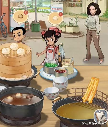 这里可以选择去帮忙旁边的早点摊的老板,这样她便会雇佣我们。因为这是一个早点摊,所以经常会有客人前来买早点,而我们需要做的便是将这些早点拿给客人们。前期我们的早餐只有油条,玩家们可以使用金币来升级摊位,这样卖的早点价格会变高,在达到一定的等级还会出现新的早点。这个阶段我们的任务就是出售早点获取金币。