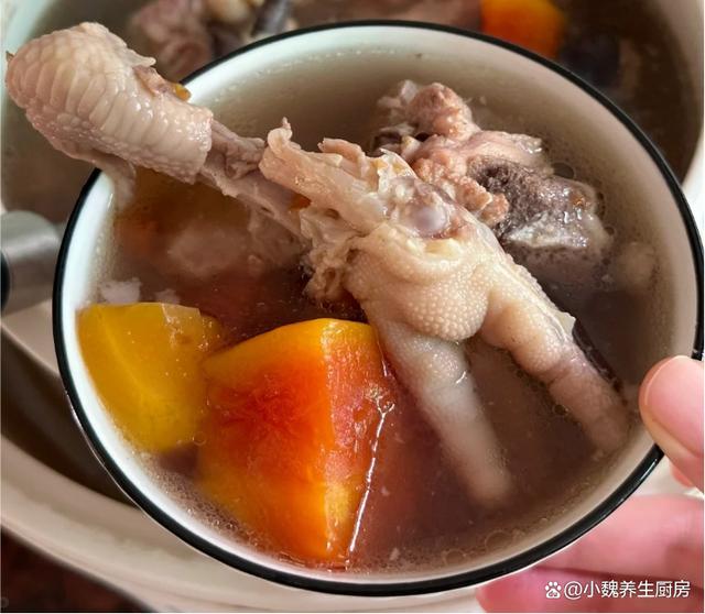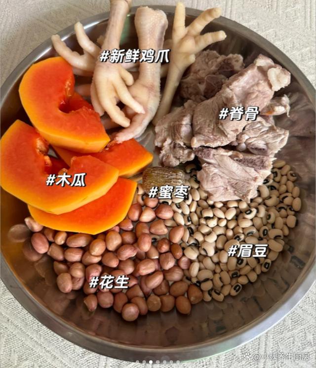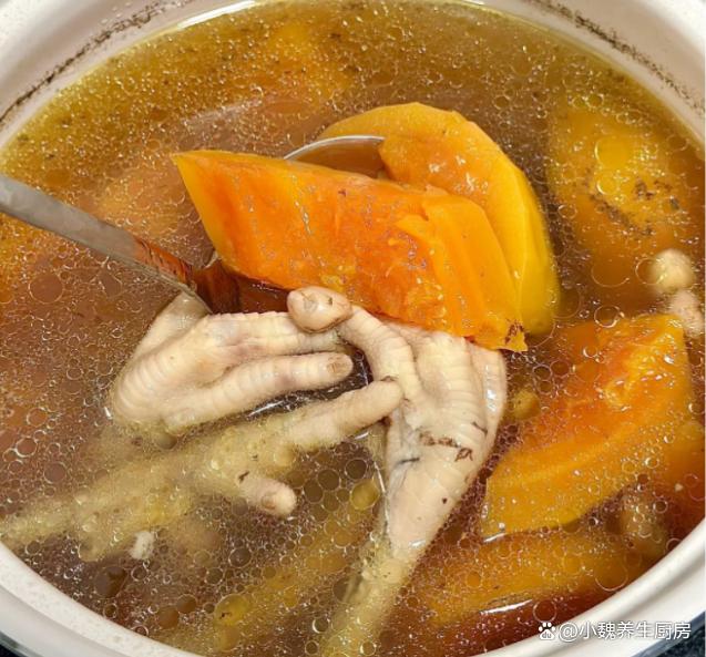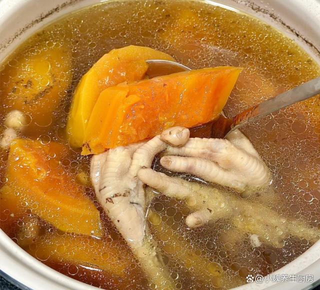 时光荏苒,已经到了十一月,秋去冬来,季节更替非常快,明日就要迎来24节气——立冬节气,立冬是冬天的第一个节气,冬天的气息更浓,寒冷的天气要来临了,这个时候天气太冷,让人气虚体弱,身体总是没有力气,很难安稳度过寒冬。到了立冬以后,可以不吃山珍海味,但是一定别忘记多喝一些鲜汤——木瓜眉豆鸡爪脊骨汤,简单炖一锅,汤品超级鲜美,别不懂吃。明日立冬,有钱没钱,常给家人喝这汤,顺应时节,补足营养过冬!  【木瓜眉豆鸡爪脊骨汤的详细做法】 准备一些食材:选购新鲜鸡爪8个(鸡爪是鸡身上最不受欢迎的部位,因为非常脏,处理起来非常麻烦,鸡爪可以烹饪成各种美食,搭配木瓜和眉豆是绝配,让汤品鲜美倍增),新鲜脊骨200克左右(脊骨是猪骨之一,脊骨的肉多一些,价格非常便宜,是秋冬两季煲汤的食材之一,汤品鲜美极了),几个蜜枣,眉豆50克左右,花生45克左右,温水少许,冷水若干,一个新鲜木瓜(木瓜要选择表皮光滑,色泽均匀,捏起来软硬适中,新鲜的木瓜可以生吃或炖汤),生姜和香葱少许,黄酒或料酒若干,食盐若干,半勺胡椒粉,其他。 详细制作技巧: 1:提前准备好鸡爪,脊骨,眉豆,花生和木瓜等食材,先把花生都剥掉外壳,将花生米冷水泡发一会儿,放在一边备用。2:把新鲜鸡爪洗干净,简单做一个“美甲”,脊骨也要剁块出来,先用清水浸泡出血水,捞出即可。 3:生姜切成片状,大葱也切成小段,脊骨和鸡爪都放入锅中,加上足量冷水(记得要全面没过食材),加上少许黄酒,放入葱段和生姜片,两种食材都焯烫几分钟,捞出用温水冲洗掉表面浮沫即可。4:花生米和眉豆分别洗净,提前用冷水泡发一个小时,几个蜜枣都洗干净,陈皮也要温水泡软,去掉内壁的脏东西,备用。5:木瓜用刀削掉外皮,从中间破开,挖掉瓜瓤和瓜子,洗净后切成滚刀块,准备好鸡爪,脊骨,眉豆,花生等食材,正式开始烹饪这款木瓜眉豆鸡爪脊骨汤。 6:炖锅要提前洗净,汤锅里放入处理好的脊骨和鸡爪,然后放入木瓜块,蜜枣,眉豆和花生,加上少许温开水,把汤品大火煮几分钟,煮沸后撇去浮沫。 7:让汤品变色,鸡爪和脊骨都炖到软烂,调入一些胡椒粉和食盐即可,快速用勺子搅动,让营养都煮出来,关火即可。 木瓜眉豆鸡爪脊骨汤的制作小贴士:首先,选材至关重要。鸡爪和脊骨要选择新鲜的,最好是从正规渠道购买,确保肉质鲜嫩且无异味。木瓜则要挑选表皮光滑、色泽鲜艳、果肉饱满的,这样的木瓜味道更加甜美,汤汁也会更加浓郁。眉豆则需要饱满、色泽均匀,这样的豆类煮出来的汤口感更佳。 其次,火候的掌握也非常关键。先将鸡爪和脊骨用冷水下锅,焯去血水后捞出,这样能有效去除腥味。接着,将处理好的鸡爪、脊骨、眉豆和适量的清水一同放入砂锅中,大火煮沸后转小火慢炖。期间要时刻关注火候,避免汤汁烧干,同时也要适时撇去浮沫,保持汤的清澈。 在炖煮的过程中,还可以根据个人口味加入适量的姜片、葱段等调料,既能去腥增香,又能使汤品更加鲜美。当眉豆煮得软糯,鸡爪和脊骨的精华全部融入汤中时,再加入切好的木瓜块,继续炖煮至木瓜软烂即可。 最后,调味品的添加要适量。在出锅前,只需加入少许盐调味即可,过多的调味品会掩盖汤品的原味。这样,一碗色香味俱佳的木瓜眉豆鸡爪脊骨汤就完成了,不仅营养丰富,还能滋补养颜,让你在品尝美味的同时,也能感受到食材带来的滋养。 各位网友们,你们是否学会这款木瓜眉豆鸡爪脊骨汤的制作技巧吗?(文中的配图全部出自网络)