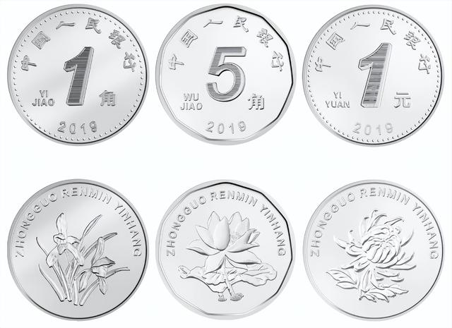 它们是上面这个样子的,其中的5角硬币,是金色的。 而到了2019年,我国发行的新版硬币,对硬币进行了较大幅度的改动。