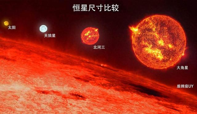 在目前发现的2万亿个星系,数万亿亿颗恒星里,体积最大的是5100光年外的红超巨星盾牌座UY,它能装下18亿个太阳,每秒30万公里的光速如果把它和太阳互换位置的话,整个太阳系所有行星都会被它吞噬。