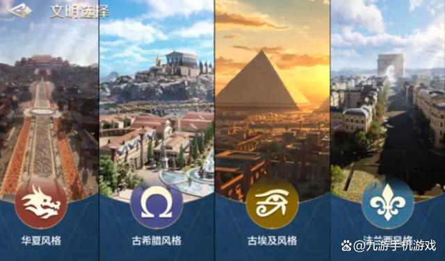 一、文明选择 玩家刚开局就需要在华夏、不列颠、法兰西、古埃及和古希腊这五个文明中进行选择,很多小伙伴都不清楚该怎么选,下面就依次介绍下每个文明的特点方便大家选择,华夏文明的两个增益是指南针和人口繁荣,能让我们在民兵的资源消耗量减少,加快整体行军速度;古希腊的是几何和阿果斯,能让玩家修建建筑的速度更快,提高征募民兵的效率; 古埃及是外科手术和巨石建筑,能让建筑的耐久变得更高,军队自带治疗功能;法兰西是古典文学会常备军,能拥有更高的行政效率和将战损部队装换为征兵用物资的能力;不列颠有日不落和生产,这能让玩家在每征服一座城市后获得更多的硬币,还能比其他的文明多一个建造队列,大家可以根据自己想要的增益来选择文明。