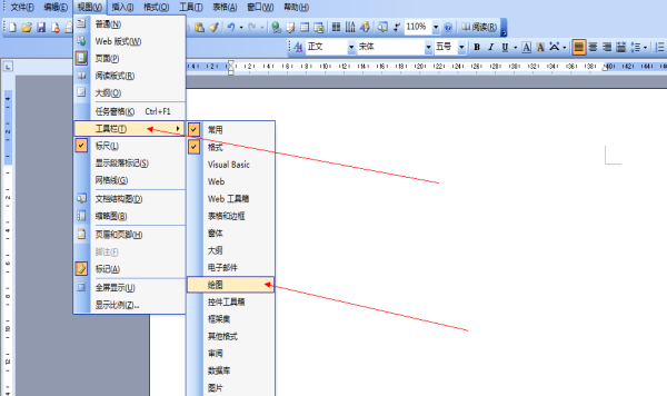 2、单击“视图”下面“工具栏”——“绘图”命令。