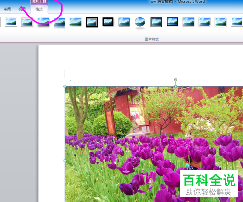 4. 插入完成之后我们可以鼠标点击图片,然后可以在软件的上方找到图片工具选择下方的格式选项。