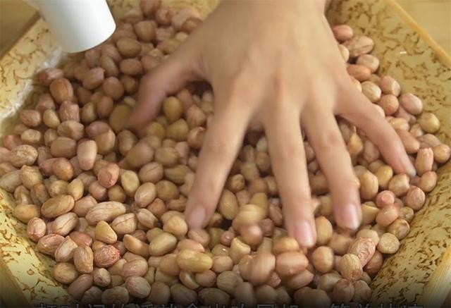 2.过滤掉水分,尽量把花生米表面的水分完全晾干,赶时间的话就拿出吹风机,简单快速,表面水分吹干以后倒在大碗里。