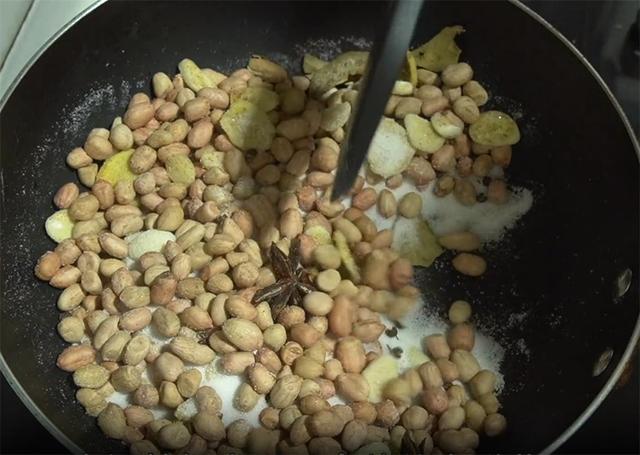 准备食材: 花生米、生姜、大蒜、八角、香叶、花椒、五香粉、高度白酒、盐 具体做法: