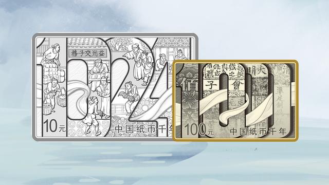 不过它的热度特别高,金总也提前公布了它们的设计稿! 今年是中国首张纸币诞生一千周年的重大时刻,在1024年,全人类首张纸币——交子正式诞生。 为此,我们马上就要发行3枚长方形的纪念币了。 它们的设计,非常漂亮!