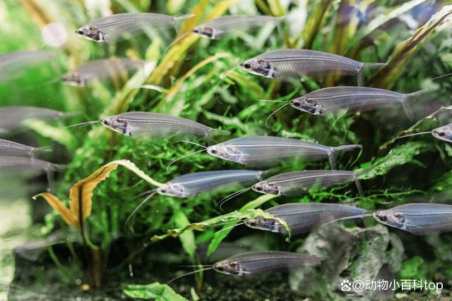 双须缺鳍鲶,通称玻璃鲶鱼,被誉为最透明的鱼类之一。它的体型好似一片柳叶,身体透明如同玻璃,并带有淡淡的浅蓝色光泽。观察时可以清晰地见到背脊骨和内脏器官,仿佛在观察骨骼标本一般。此外,深红紫色的肩斑也会出现在鳃盖后面。双须缺鳍鲶的背鳍尚未完全发育,而臀鳍却异常地长,一直延伸至深叉状尾鳍的根部。它的内脏器官被挤压于身体前部,藏匿在一层银色的虚拟袋中。这种鱼类一般体长约8-11厘米。双须缺鳍鲶通常在水体中层活动,在阳光下非常活跃。与非洲玻璃鱼这类并无亲缘关系的鱼类一样,它们也会不停地游动。 10、世界上飞得最远的鱼(飞鱼)