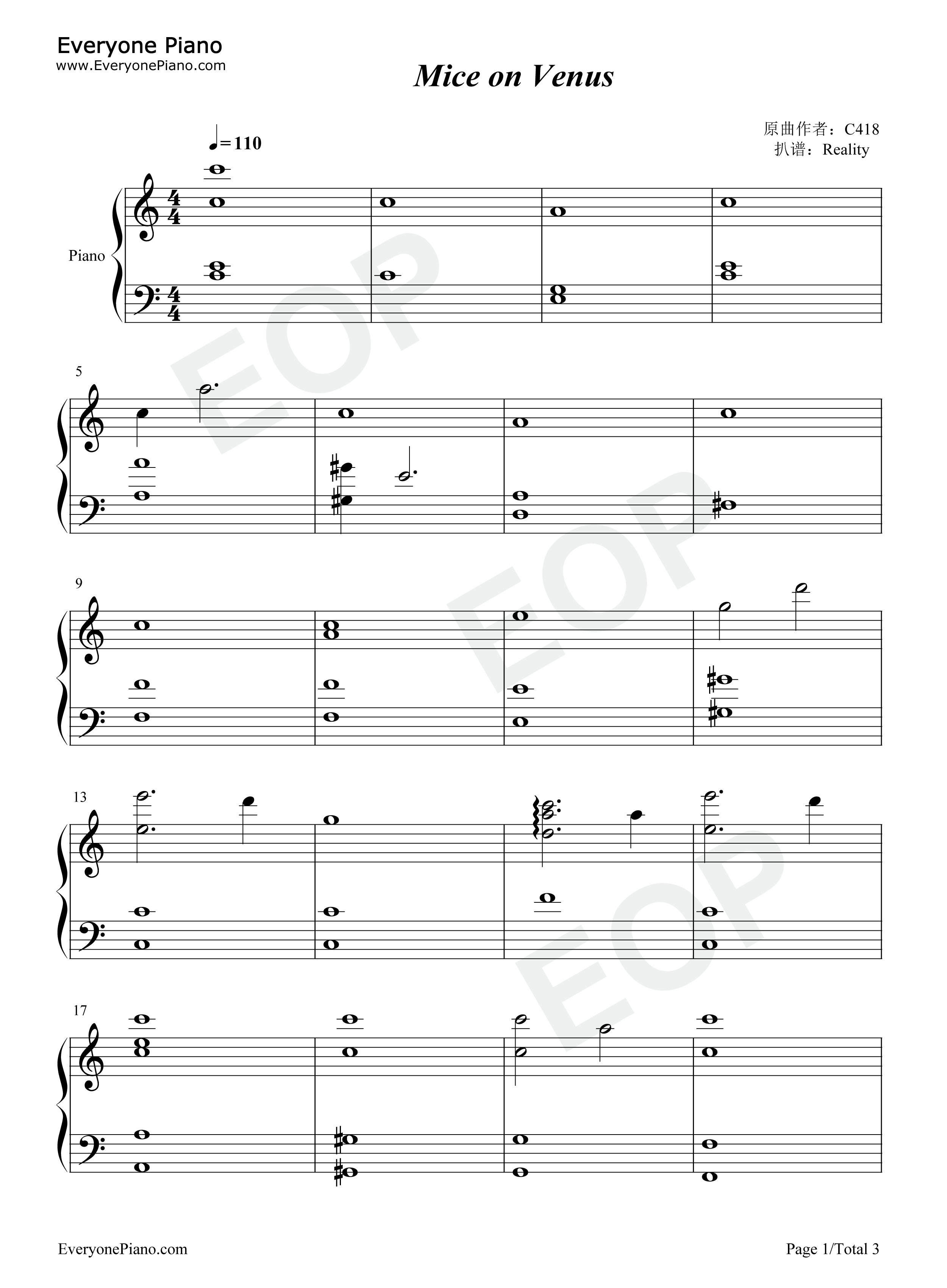 当前位置:首页>娱乐>Mice on Venus钢琴谱-C418