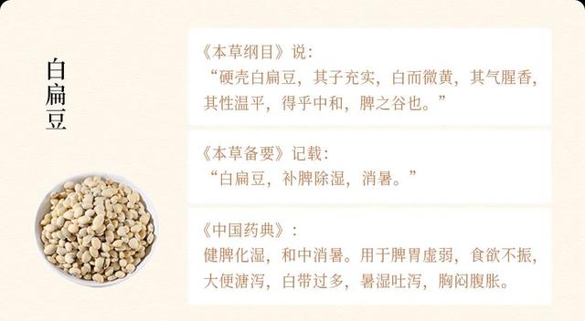 疏通自己,可以多推腹,做八段锦(调理脾胃须单举),或是吃点白扁豆。 白扁豆被药圣李时珍誉为“脾之谷”,平补脾阳,去湿气,不管寒湿还是湿热,用它都可以。 一般健脾的东西会偏温或偏燥,对于有热象的人可能会加重,而白扁豆补脾胃不滋腻,温和不燥烈不伤阳气,连孕妇都可以吃,有安养胎儿的作用。 《本草新编》中说:“盖胎之不安者,由于气之不安,白扁豆尤能和中,故用之以和胎气耳。”