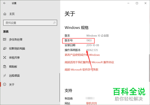 8. 来到下图所示的关于页面后,就可以查询到系统的版本号了。