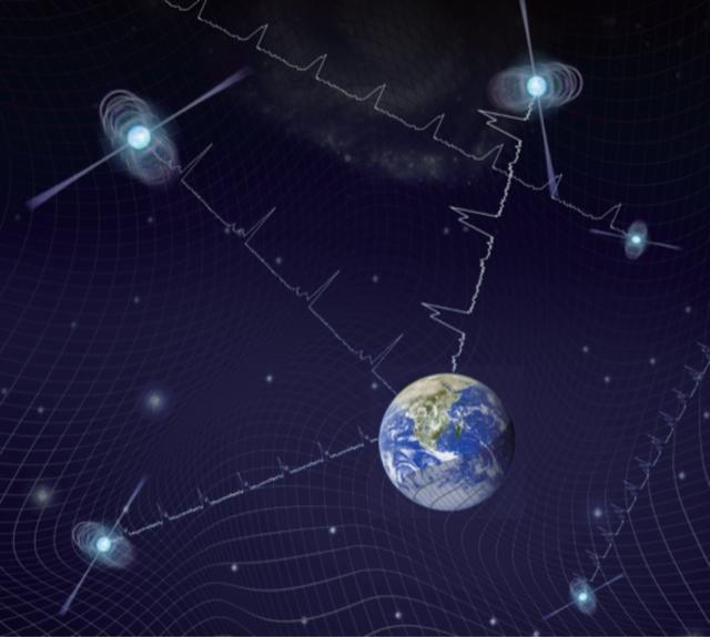 脉冲星计时阵列(PTAs)是由脉冲星形成的高精度计时网络,通过监测这些脉冲的时序,天文学家可以探测到引力波在地球和脉冲星之间传递时的微妙影响。PTAs已经成为精密的宇宙之耳,倾听着宇宙的微弱震颤——随机引力波背景。