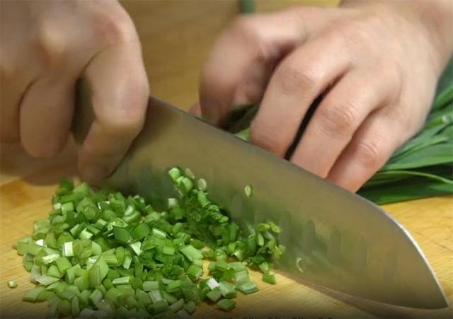 3.准备一小把洗净的韭菜切成末,当然也可以用葱花代替。