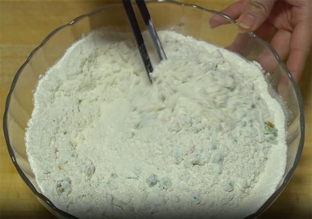 3.碗里面加入600克面粉,先搅拌均匀备用。