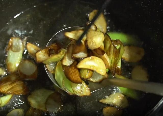 6.锅里油热,放入葱花和蒜片,用小火炸出里面的香味,把葱蒜炸到颜色焦黄的时候关火,先捞出来。