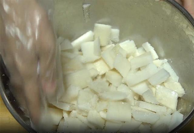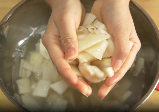 4.这就是已经杀好水的萝卜皮,用力挤出多余的水分,再好好清洗一下,最好是用凉白开或者纯净水来洗。