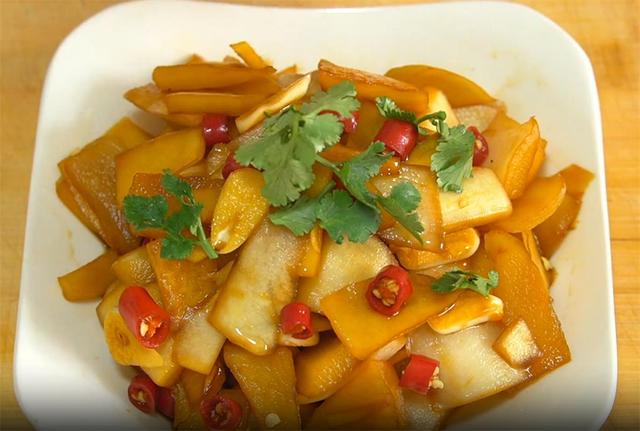 7.第二天取出一部分摆盘,再滴几滴香油增香,还可以放点香菜,咱们的开胃小菜就可以上桌啦,这么一盘萝卜皮,饭店差不多要15元,自己在家做的,既简单又实惠,这些料汁差不多能没过食材的一半,吃起来口感特别爽脆,料汁只要没有变质,还可以再次使用。 |