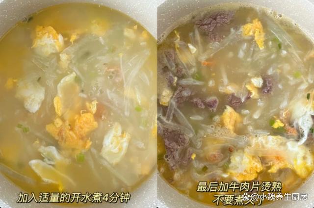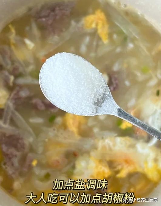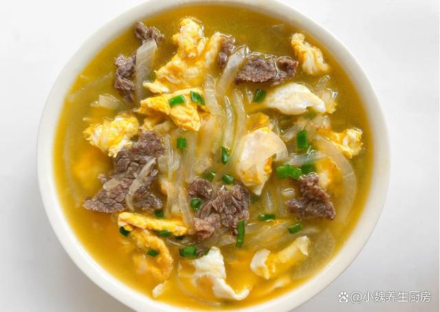 (www.ws46.cOm) 8:最后加入胡椒粉和食盐,加上一些葱花点缀,用锅铲翻动几下,尝一尝咸淡,适当调味就可以出锅了,这款萝卜丝鸡蛋牛肉汤喝起来太鲜美了。 萝卜丝鸡蛋牛肉汤是今年秋冬必喝的家常靓汤,汤品选用白萝卜,鸡蛋和牛肉制作而成,萝卜丝让汤品更加清甜,牛肉的肉质鲜嫩,搭配煎熟的鸡蛋,汤色好看,营养全面,为入冬打好基础。 各位网友们,你们是否喝过这款萝卜丝鸡蛋牛肉汤吗?(文中的配图都出自网络)