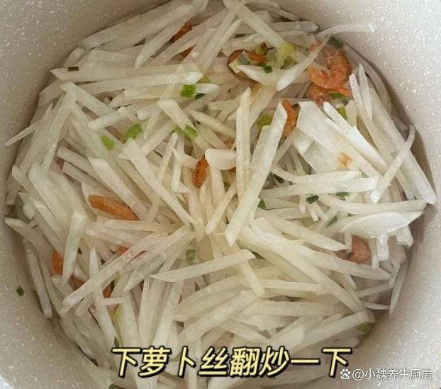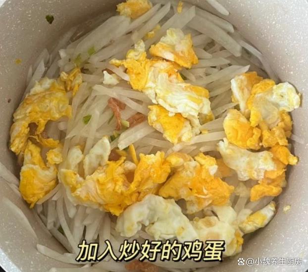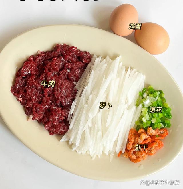 时间转眼即逝,终于结束让人烦心的十月份,十一月就进入深秋的最后日子,马上冬天也要来临,目前还处于秋冬两季交替的时候,气温非常不稳定,但是昼夜温差大,人的身体代谢加快,各项机能处于低下的状态,需要提前为入冬做准备,适当给身体温补,常吃牛肉,蛋类,鱼肉等等,补充优质的蛋白质,脂肪和微量元素,让你整个冬天过得舒服。我们家里种植很多白萝卜,白萝卜也成熟了,根本也吃不完,每天都换着方法吃,今天准备用白萝卜,鸡蛋和牛肉制作一款时令鲜汤——萝卜丝鸡蛋牛肉汤,这汤特别鲜美,滋补养生,益处多多,不懂吃可惜了。十一月,有钱没钱,建议要多喝这汤,应季而食,补足营养迎接冬天。  【萝卜丝鸡蛋牛肉汤的制作过程】 准备一些食材:选购土鸡蛋两枚(土鸡蛋是一种常见的蛋类,土鸡蛋的个头小一些,营养价值会更高,可以做成水煮蛋,卤蛋,炒鸡蛋,蒸蛋或鸡蛋汤等等),一根新鲜白萝卜(白萝卜是一种特别平价的水果,被誉为“平民医生”,秋冬的白萝卜更清甜,水分非常足,食疗价值更高,对咳嗽感冒有帮助),冷水和开水少许,几片老姜,若干根香葱,虾干少许,食用油或猪油少许,选购300克优质嫩牛肉(嫩牛肉又叫牛肉里脊,是牛身上最鲜嫩的部位,肉质鲜嫩,口感俱佳,是这道汤品的最优选择),胡椒粉半勺,食盐若干,其他佐料。 具体制作步骤: 1:提前挑选好虾干,白萝卜,鸡蛋和牛肉等食材,几片生姜切成细丝,香葱都洗净去掉葱须,切成若干细葱花,放在碗中备用。2:把虾干用温水泡发一会儿,捞出备用,白萝卜的外皮洗净,用工具去掉外皮,先切成片状,然后切成长条细丝,萝卜丝可以用盐水浸泡,最后控干水分即可。3:把牛肉里脊去掉一层筋膜,用冷水浸泡出血水,牛肉要逆纹路切片,牛肉片要薄一些,这样口感会更嫩一些。 4:牛肉片放在器皿里,加上半勺料酒或葱姜水,加上一丢丢食盐,裹上生粉少许,加上生抽半勺,滴入一些辅食油,把牛肉片充分腌制入味,静置20分钟左右。 5:锅底烧热以后,加上食用油烧热,打入两个土鸡蛋,将鸡蛋慢慢煎至定型,炒散称若干小块,盛出即可。 6:锅中留少许食用油,加上一些虾干,葱花和姜末炒香,放入一些萝卜丝炒至变软,放入煎好的鸡蛋块。