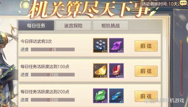首先第一个活动是机术迷城,玩家们可以在通过各类的任务来获取到各类的奖励。这个活动主要是以探索迷宫为主,在探索的同时还可以完成各种任务,这样便能获取到物资的奖励,比如魂将碎片,绚烂彩锦等等。