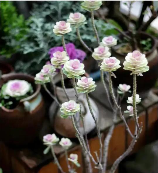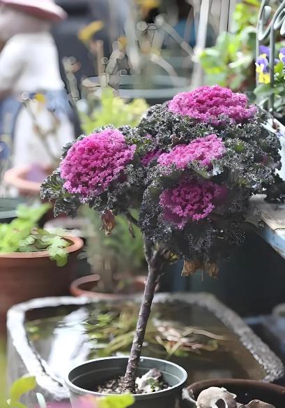 这些都不叫事,大家见过砖头缝里种菜的吗?简单,轻易就能大丰收! 如果说,这些还不能算是种菜种的登峰造极,那么,今天和大家聊的这个江苏的大妈,把一棵菜种了9年,种的比花儿还要好看,算是会种菜了吧! 不过这并不是一颗普通的蔬菜,而是一种名为羽衣甘蓝的观赏型蔬菜,大妈愣是花了9年的时间,把一颗小苗养成了像盆景一样的老桩!