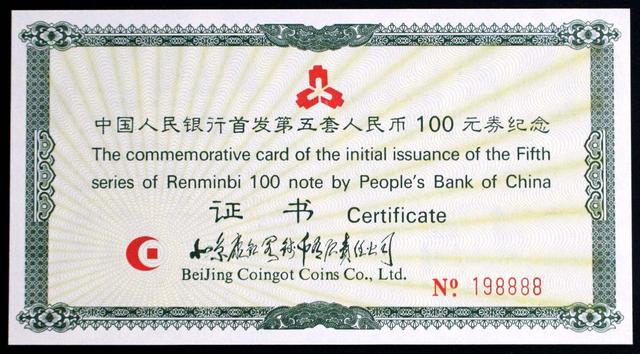 值得一提的是,在100元纸币中,还有另一种珍贵的首发币,它们装帧发行50万册,是EE开头,号码小于50万的纸币。