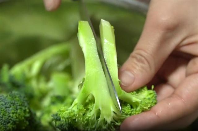 1.炒西兰花的时候,很多人都是先焯水或者直接下锅就炒了,其实西兰花焯水之后很大一部分营养流失了,但是直接炒的话又不好吃,颜色不翠绿,也不容易熟,今天给大家分享一个特别好吃的方法,炒出来的西兰花颜色翠绿,招待客人特别有面子,首先我们用小刀一朵朵给它切下来,太大的切成小块,这样西兰花不容易掉碎渣渣。