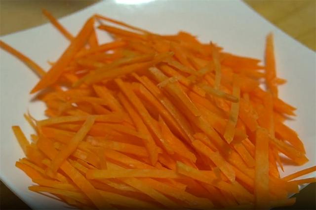 1.大家好,这段时间吃的太油腻了,最近只想吃点家常小炒,今天分享的这道小菜,不到六元就能做一盘,吃起来比较清淡开胃,特别下饭,一根洗干净的胡萝卜切片切丝备用。