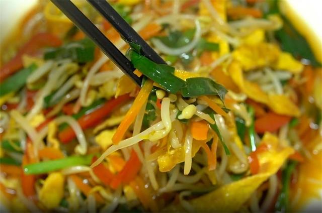 准备食材: 豆芽、韭菜、大葱、生姜、红椒、生抽、香醋、胡椒粉、白糖、盐、食用油 具体做法: