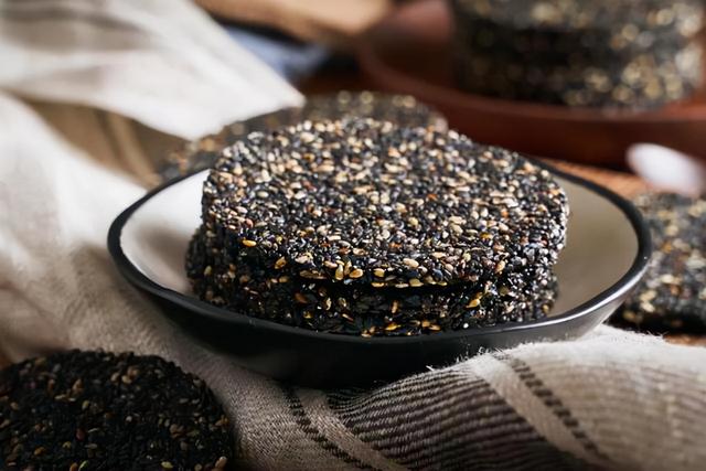 想要随时都能吃上这么一块黑芝麻饼,可以试试这款现成的,不添加白砂糖和淀粉,无油无香精,吃起来香酥薄脆,中老年朋友也能嚼得动。