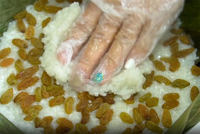 准备食材: 糯米、红枣、粽叶、葡萄干、白糖、开水 具体做法: