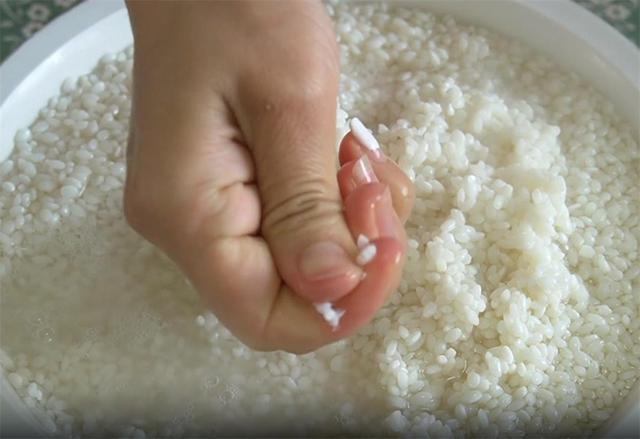 1.糯米不要只会拿来包粽子,今天咱们换个新吃法,比包粽子简单,同样软软糯糯又好吃,不会包粽子的朋友可以试试这种做法。准备800克糯米,提前浸泡一夜,糯米泡到像这样用手轻轻一捏就碎的状态就好了。(www.wS46.com)