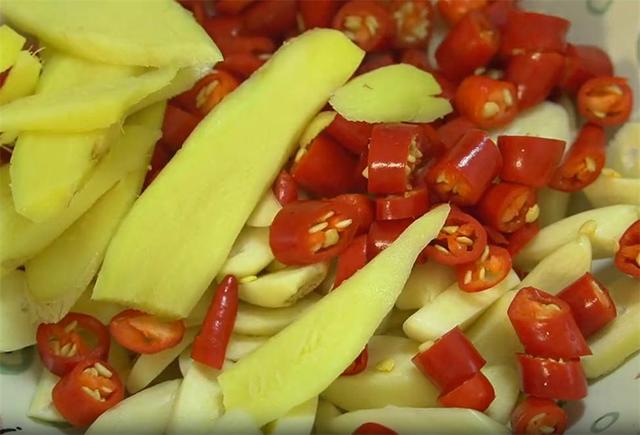 5.现在开始准备配料,50克大蒜切成片,30克小米辣切成圈,30克姜切成片备用。